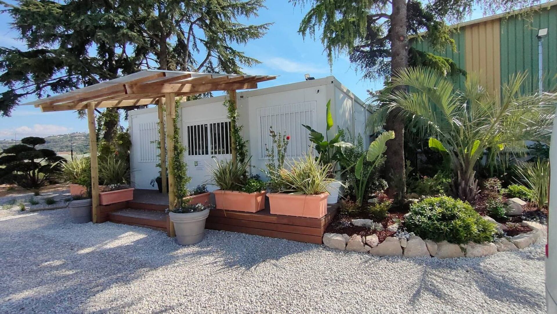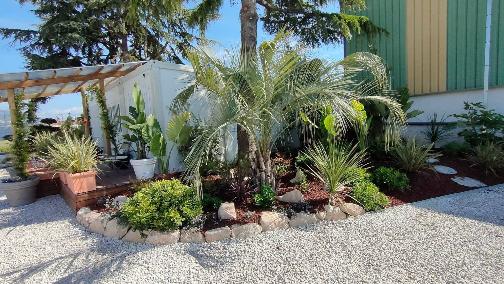 Come vous pouvez le constater, Paysage Environnement a récemment aménagé le jardin de sa nouvelle salle de réunion: un espace détente, des grands végétaux de caractère, des poteries de qualité ainsi qu'un système d'arrosage automatique totalement intégré.
