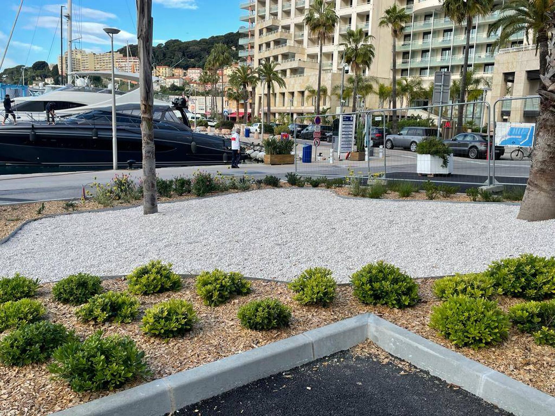 Les aménagements du port de Cap d'Ail sont assez vastes, et la typologie du jardin reste toutefois classique, nous y retrouvons: de la terre végétale approvisionnée et mise en œuvre, du travail de sol, des plantations d'arbres et de végétaux arbustifs méditerranéen, la création d'arrosage automatique et la mise en oeuvre de paillage.